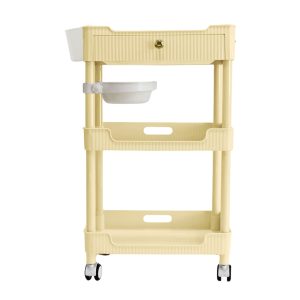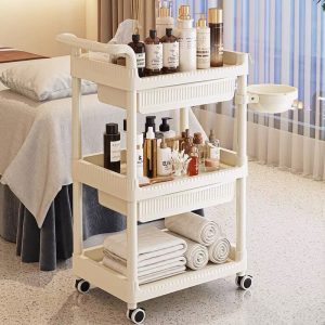 This small cart is made of high-quality environmentally friendly plastic material, which is not only lightweight and sturdy, but also has excellent impact resistance and wear resistance. Compared to traditional metal or wooden carts, it greatly reduces the overall weight, allowing beauticians to easily push it during busy work. The design of the three-layer structure, with each layer carefully planned, ensures sufficient storage space and facilitates the classification and storage of various beauty tools and products. The bottom layer can hold large instruments or heavy objects, the middle layer is suitable for placing commonly used skincare products and consumables, and the top layer can hold tools that can be used immediately, such as brushes, cotton pads, etc., at a glance, making it very convenient to access things.